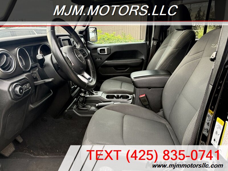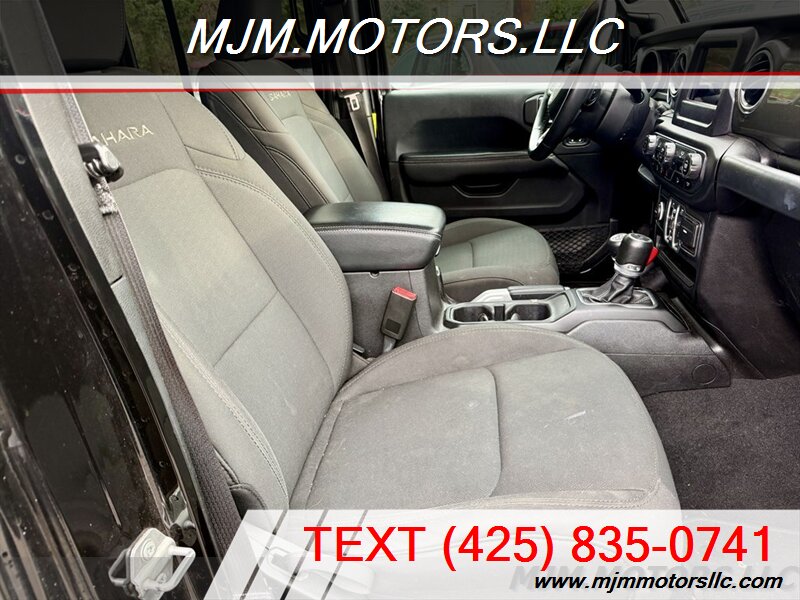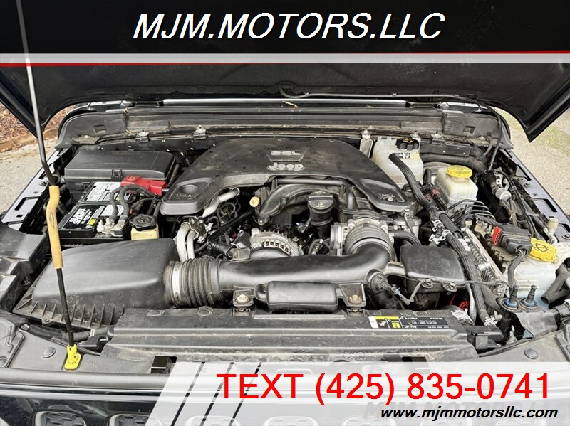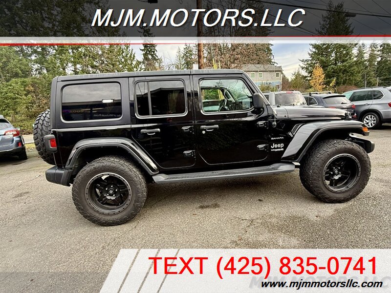 Check out this 2018 Jeep Wrangler Sahara - the perfect blend of rugged capability and everyday comfort. Powered by a 3.6L V6 pushing 285 hp, it's built to handle everything from city streets to serious off-road fun. Finished in Black Clear Coat with classic Jeep styling-round headlights, seven-slot grille, and bold fender flares-this Wrangler looks sharp from every angle. Inside, you get a spacious Black cloth interior with room for five and fold-down rear seats for extra cargo space. It comes loaded with the Sahara essentials: Uconnect 7'' touchscreen, Bluetooth, six-speaker audio, rearview camera, suspension lift with nice 35's tires and the smooth 8-speed automatic. The Command-Trac 4WD system gives you confident traction wherever you go. Fuel economy comes in at 17/23 MPG, suspension lift with nice 35's tires and this Wrangler is in excellent condition, ready for your next adventure-on or off the road. MJM MOTORS LLC 2002 196th St SW Lynnwood, WA 98036 (425) 835-0741